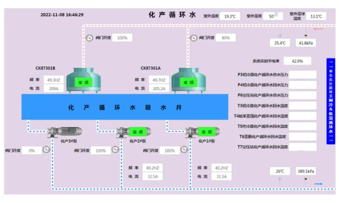 測(cè)試成績(jī)優(yōu)異,節(jié)能超出預(yù)期。淄博百時(shí)得公司結(jié)合焦化企業(yè)生產(chǎn)工藝特點(diǎn),針對(duì)性地優(yōu)化控制策略,改進(jìn)控制算法,充分發(fā)揮淄博百時(shí)得“Digi P&T工業(yè)循環(huán)水智能控制平臺(tái)”的優(yōu)勢(shì),實(shí)現(xiàn)了系統(tǒng)控制效果和節(jié)能效益的全面提升。經(jīng)過連續(xù)對(duì)比測(cè)試,在當(dāng)前工況下實(shí)現(xiàn)日均節(jié)電25000kWh,綜合節(jié)電率高達(dá)47%。該系統(tǒng)全年節(jié)電量可達(dá)650萬kWh,折合年節(jié)約標(biāo)準(zhǔn)煤2145噸,減少碳排放5577噸。